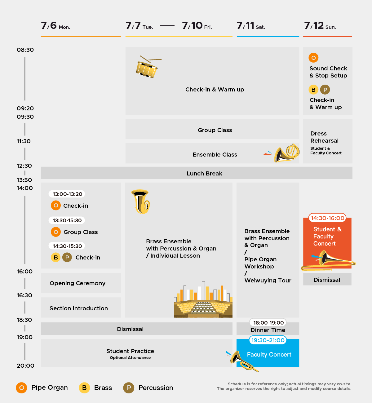 - Instruments & Quota: The camp is open to 100 participants across the following sections: Trumpet, Trombone, Horn, Euphonium, Tuba, and Percussion.